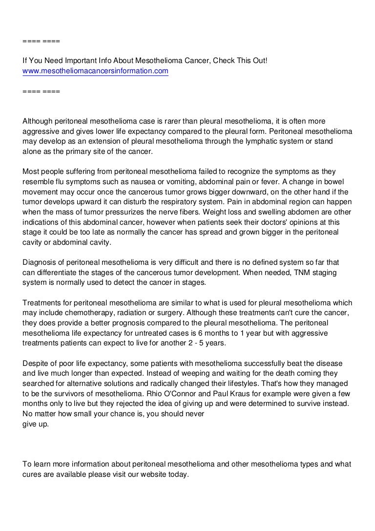 Peritoneal Mesothelioma Treatment Prognosis Diagnosis Lawsuit Info