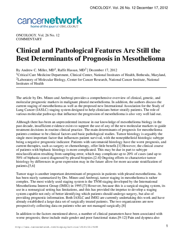 Pdf Clinical And Pathological Features Are Still The Best Determinants Of Prognosis In Mesothelioma Andrew Miller Academia Edu