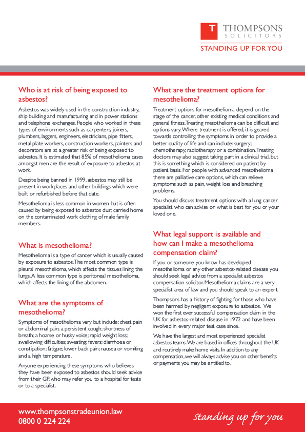 Mesothelioma Infographic Thompsons Trade Union Solicitors